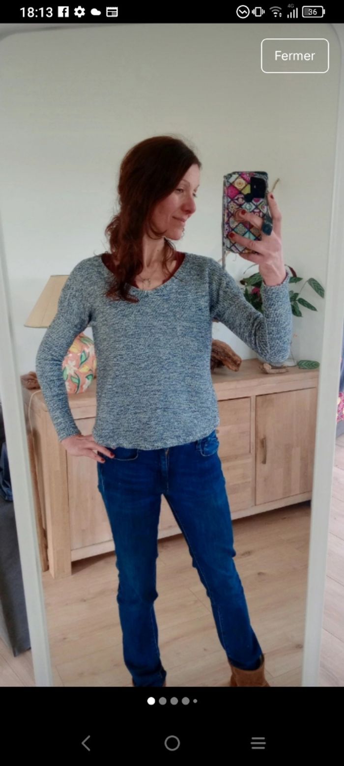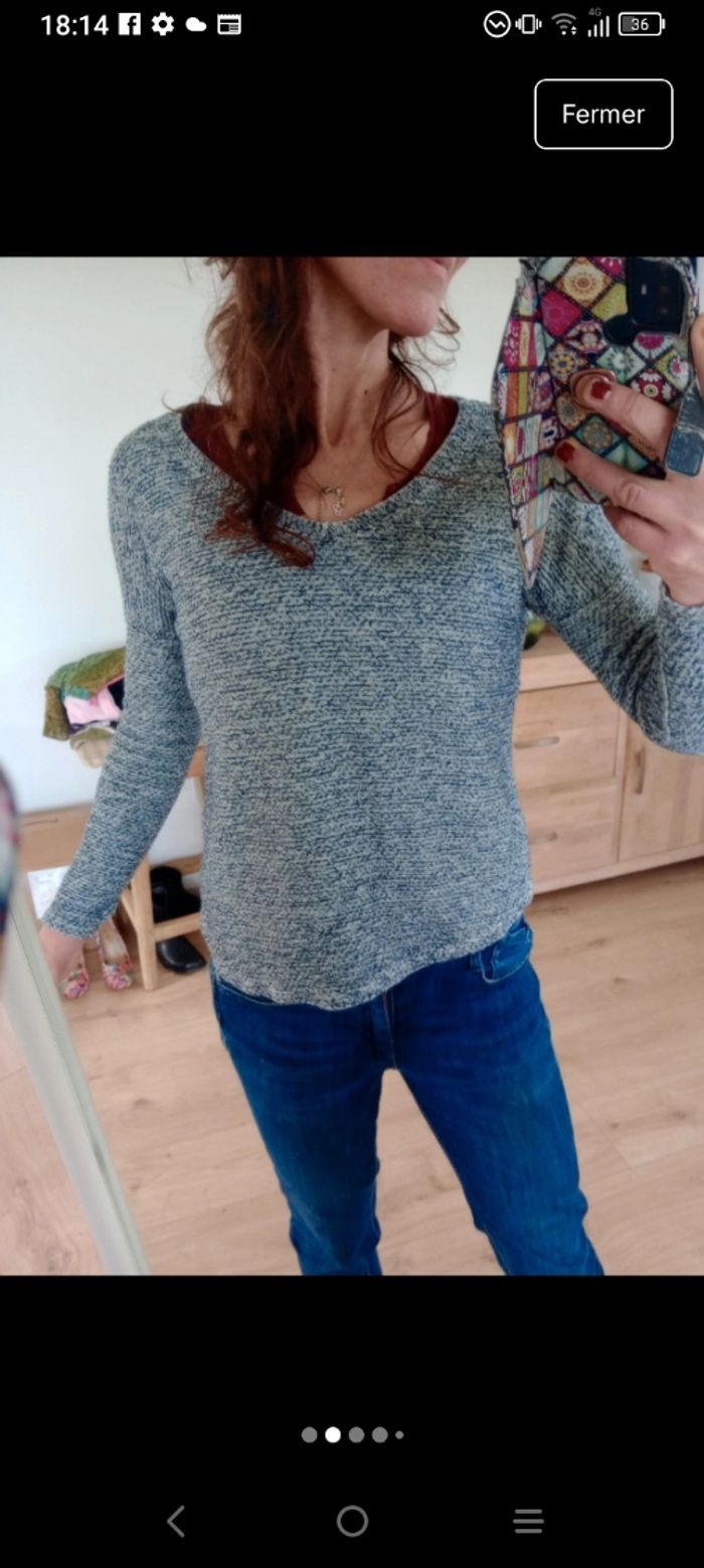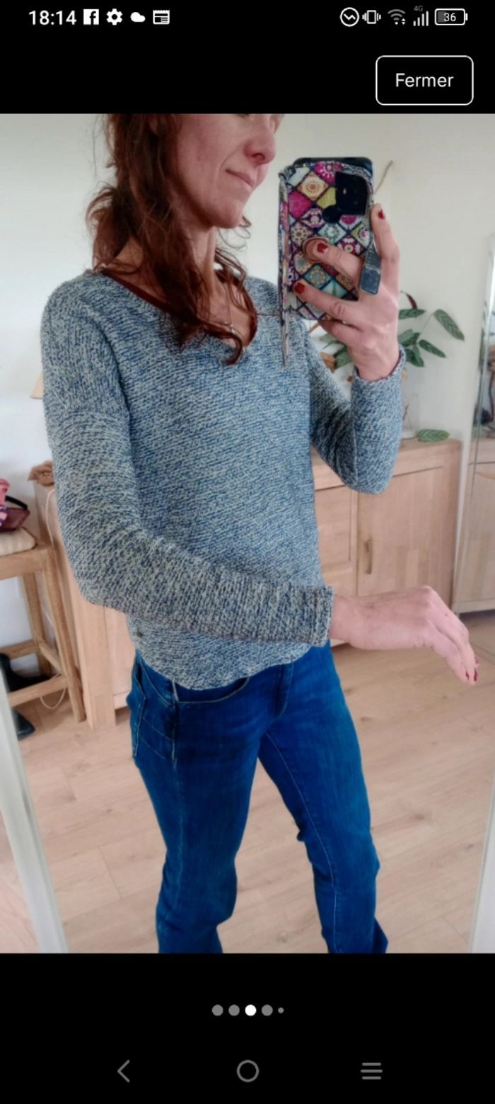 Pull femme s chiné blanc et bleu c88 - photo numéro 6