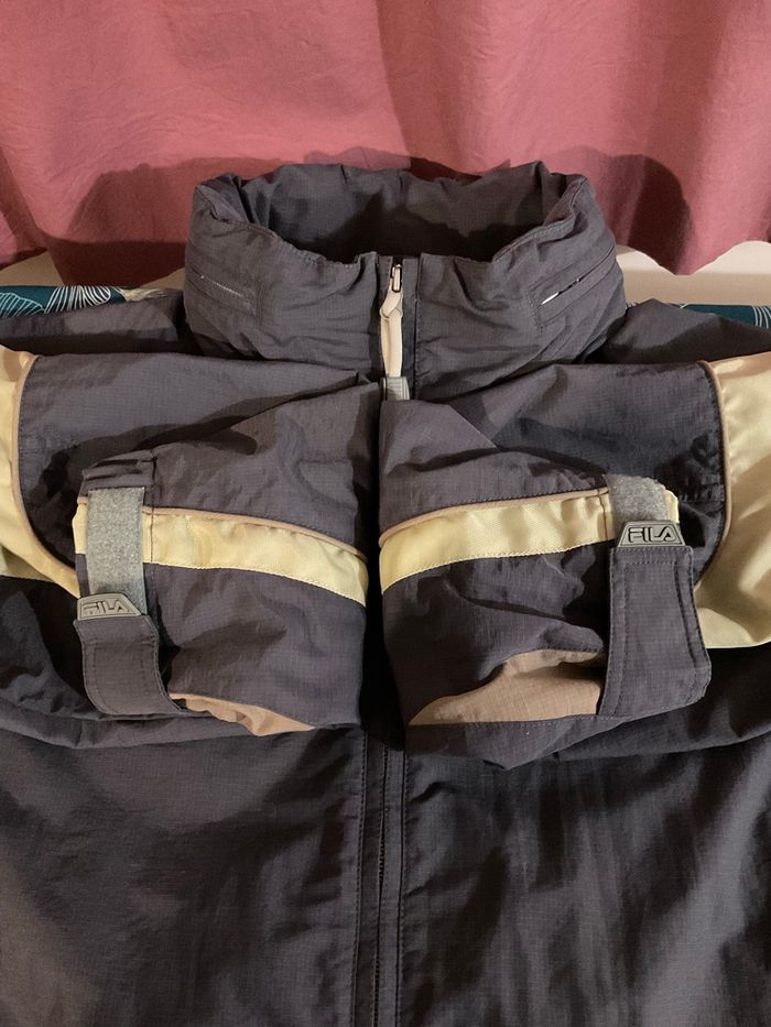 Taille L Très bon état Veste de sport d’hiver à capuche rétractable gris foncé pour homme Fila Poche intérieure basse Deux ouvertures à zip aux aisselles Deux poches à zip pour les mains Ceinture intérieure Tous les systèmes de serrage sont complets et fonctionnels Les scratches et fermeture éclair fonctionnent parfaitement Logos brodés Dimensions présentes en photo Vêtement lavé Envoi rapide et soigné #blouson #manteau #ski #snowboard #montagne #fila