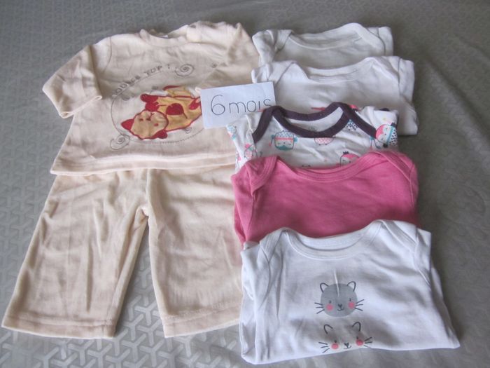 6m, pyjama velours 2 pièces + 5 bodies ml, gemo, U
