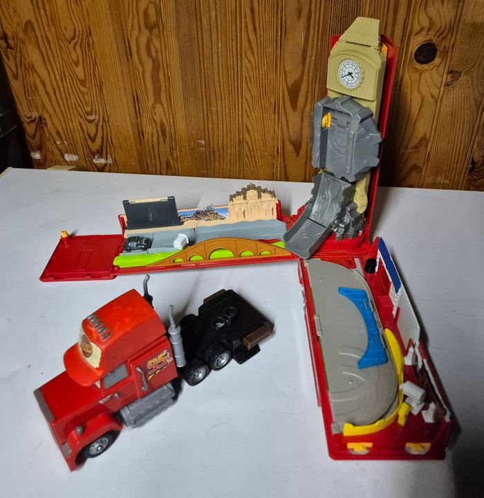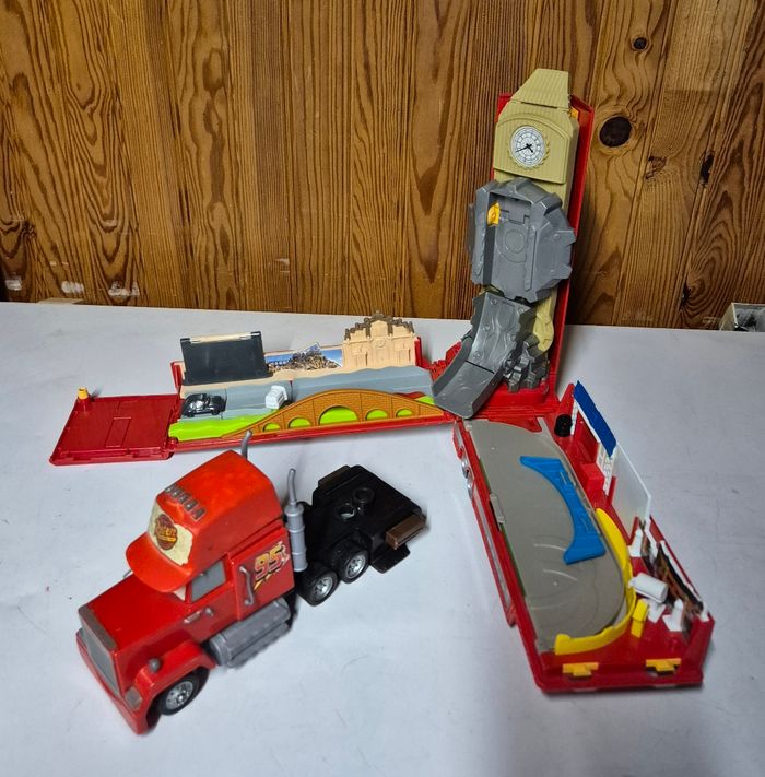 Camion mack transformable circuit mega mack raceworld disney cars 2 pixar 3 en 1 Echelle 1/55 76cm de circuit Etat conforme aux photos merci de bien les verifier. #mackcars2 #mackcamion #mackcircuit #macktransformable3en1 #megamackraceworld #camioncars2 #cars2disneypixar