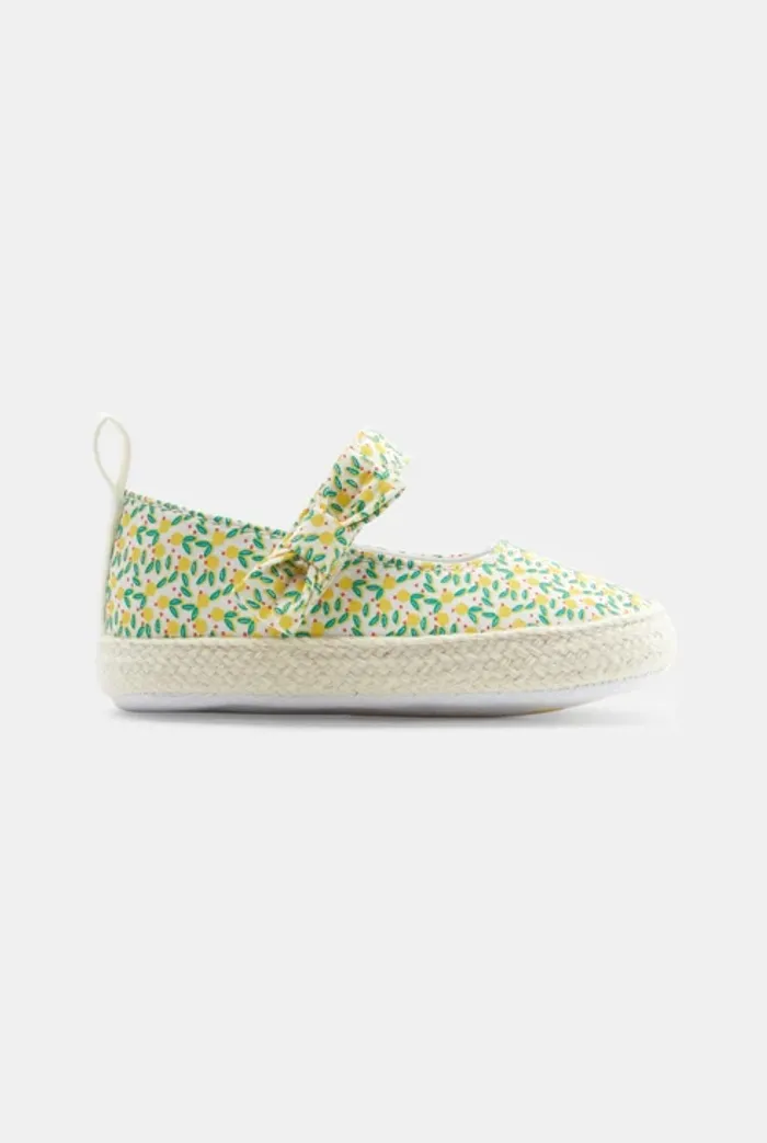 Adorables chaussures pour bébé de la marque Obaïbi, motif citron. Conçues pour un confort optimal et adaptées aux pieds délicats des tout-petits, elles conviennent pour les bébés de 1 à 6 mois. Idéales pour les premières sorties et à assortir à toutes les tenues.