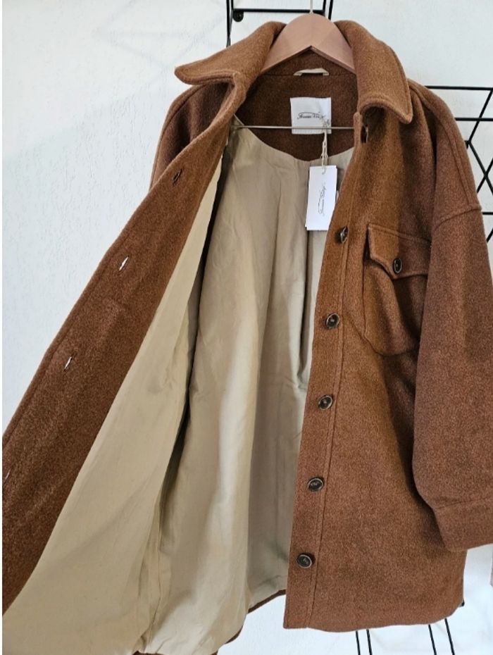 Manteau de la marque American Vintage Neuf avec étiquette Taille M / L Chauf et doublé, 65% laine Couleur marron, chocolat, camel