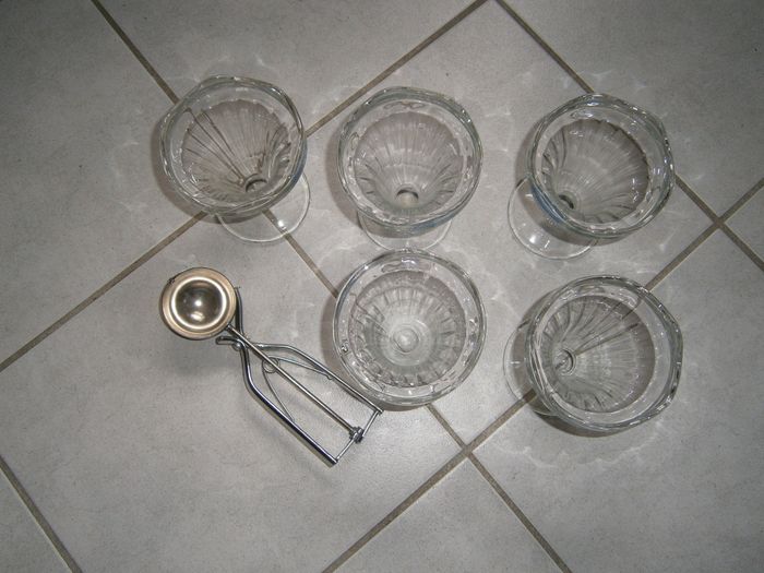 Lot de 5 coupes à glaces avec sa cuillère à boules