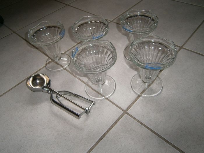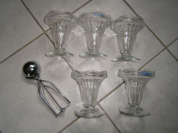Lot de 5 coupes à glaces avec sa cuillère à boules - photo numéro 1