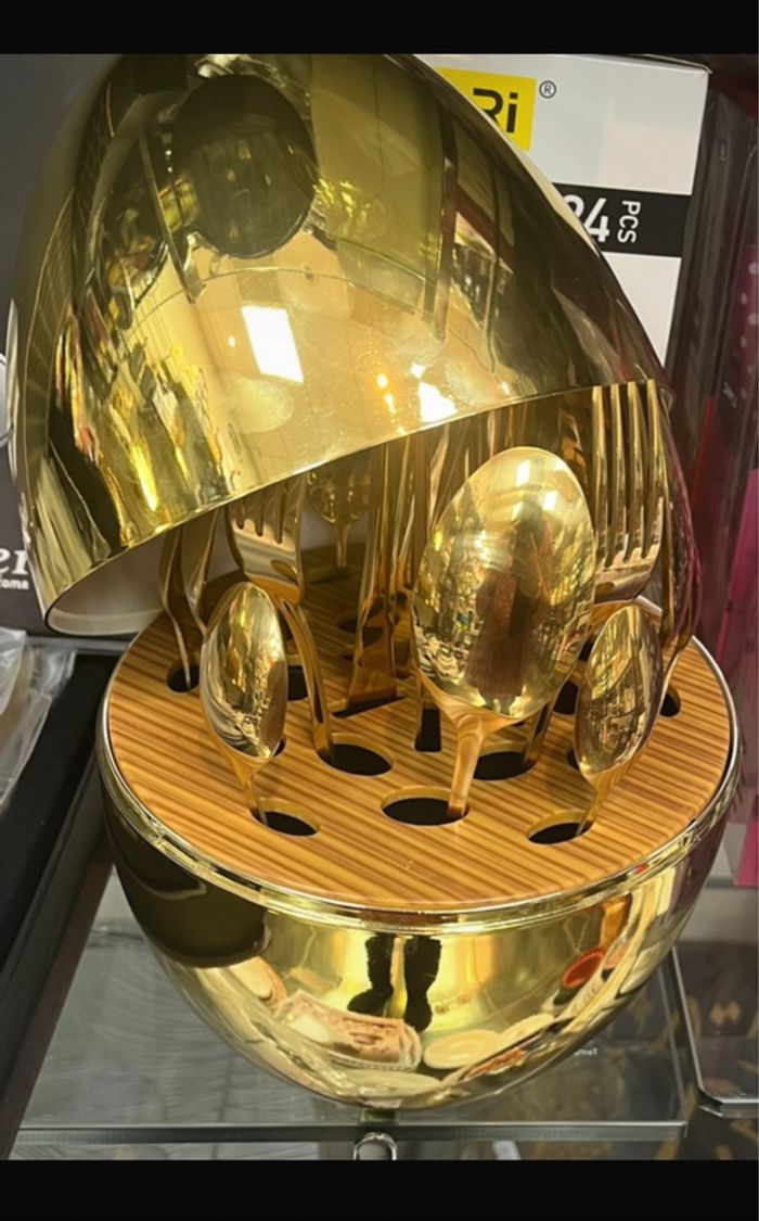 Neuf dans boîte 25 couverts neuf en forme d'œuf doré