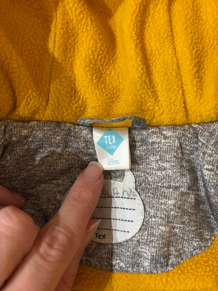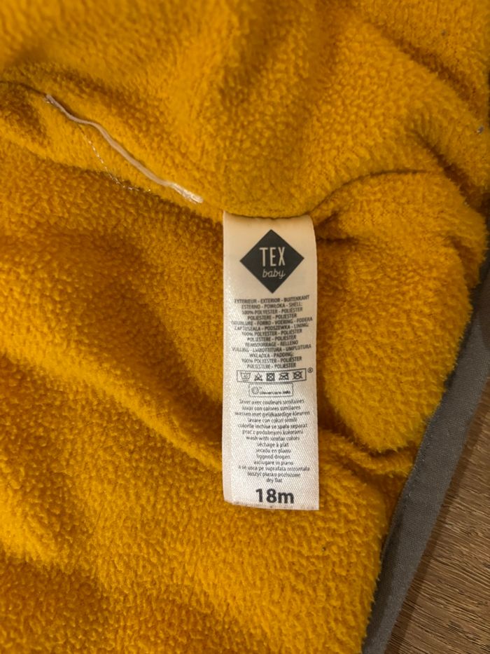 Doudoune manteau chaud/hiver entièrement doublé à capuche gris jaune full zip | Bébé garçon 18 mois - photo numéro 5