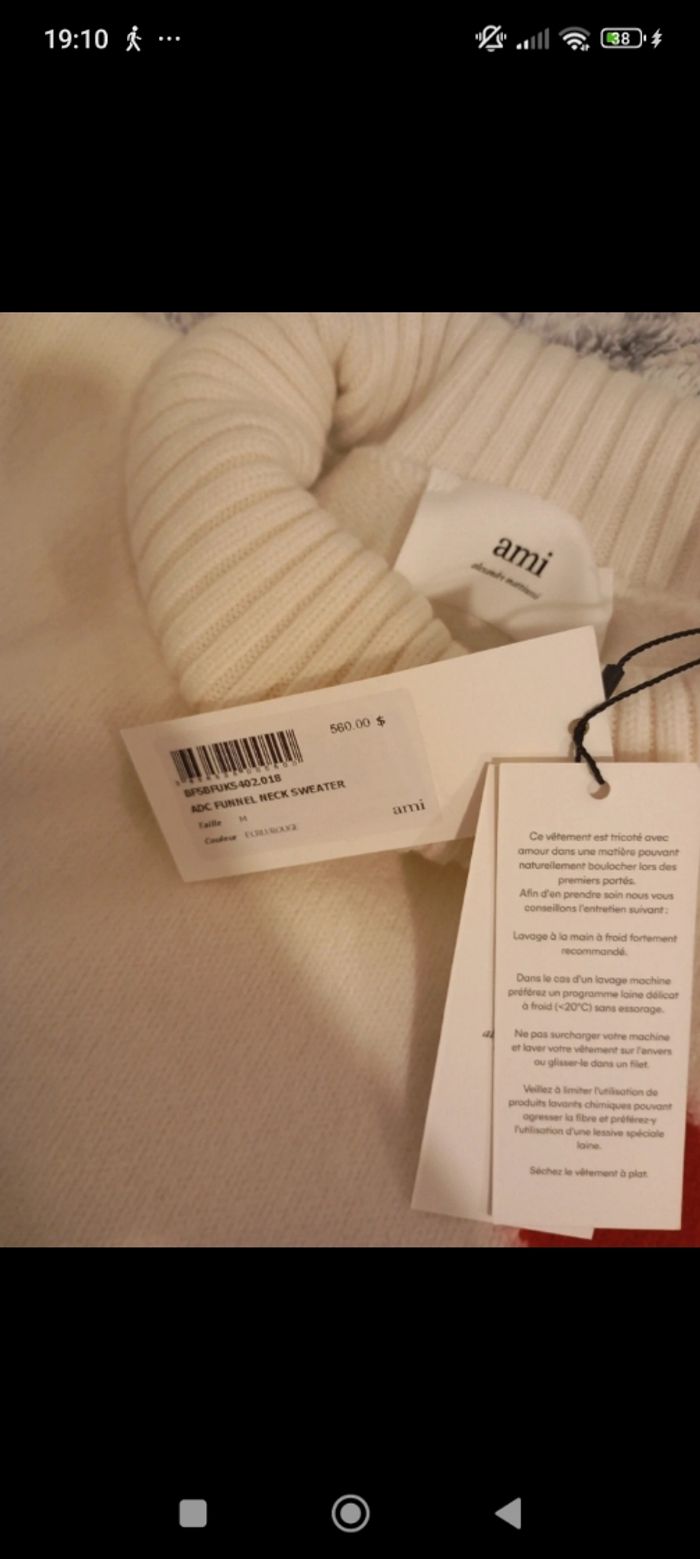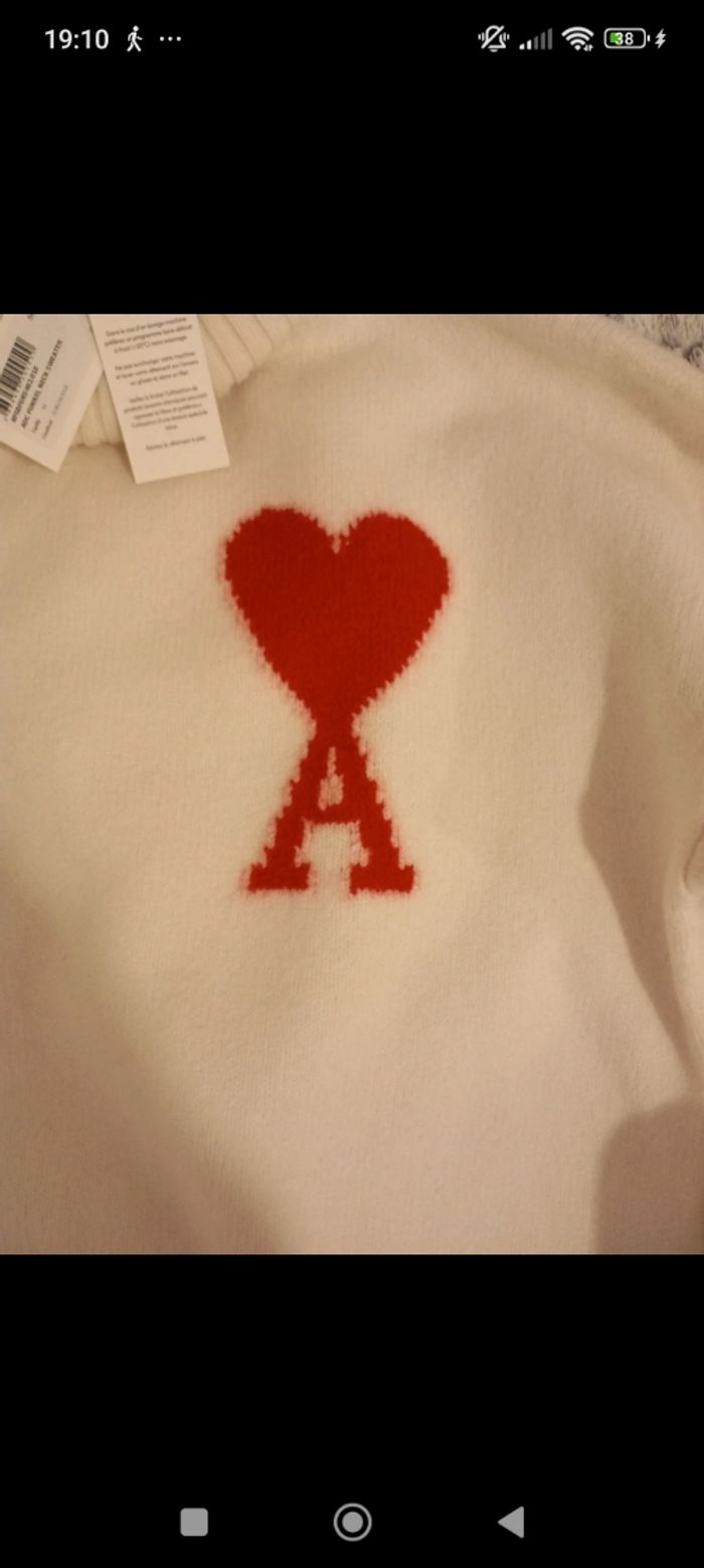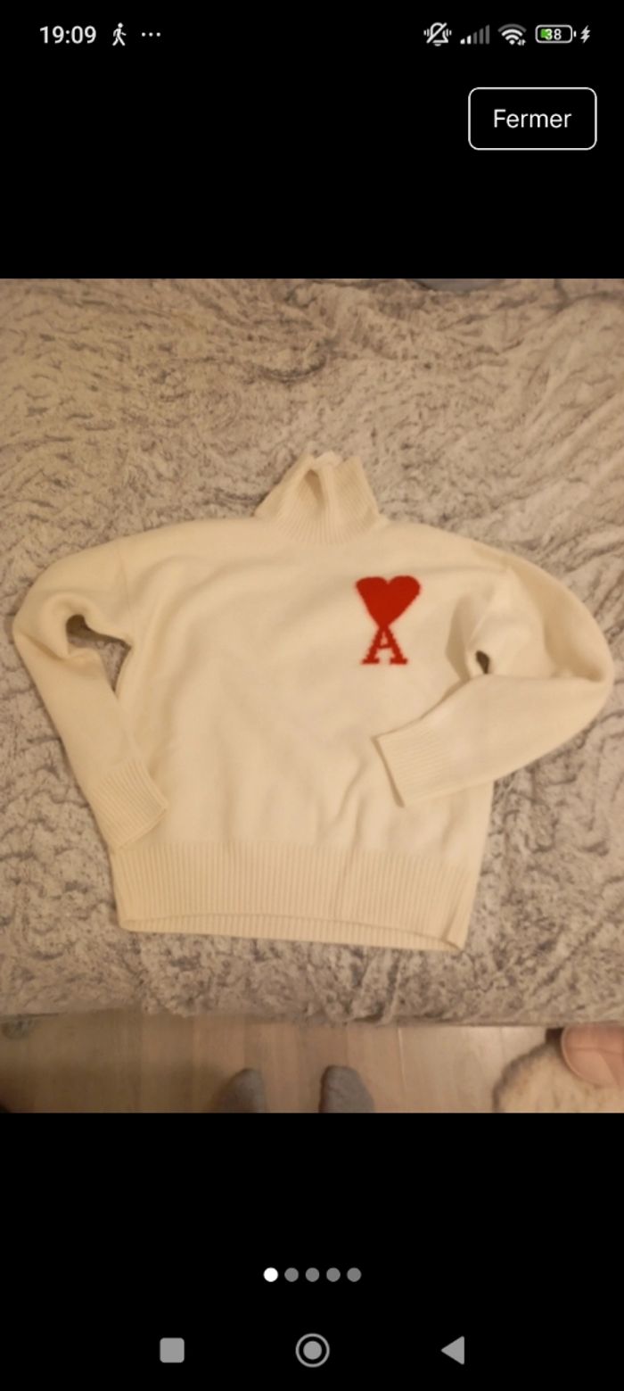 Pull d'hiver Ami blanc cassé avec coeur rouge  - photo numéro 5