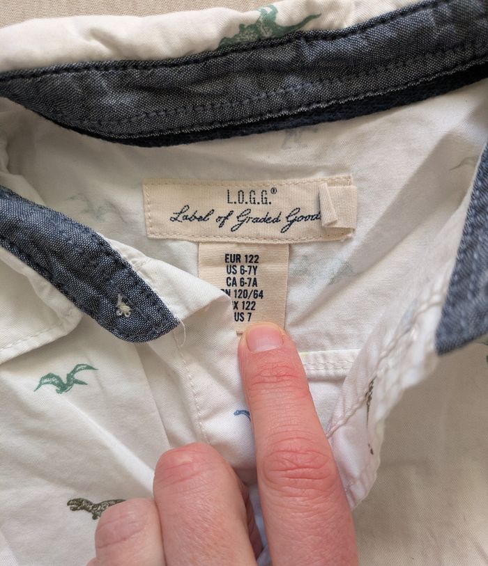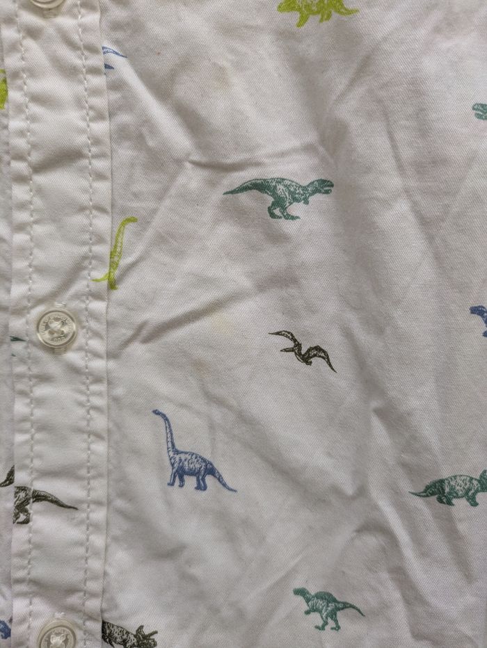 Chemise H&M blanche avec motifs dinosaures, taille 6-7 ans, H&M, très bon état