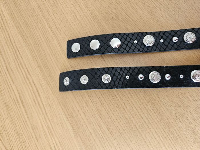 Ceinture fine de la marque Claudie Pierlot Neuve Taille 1 En cuir noir et détails argentés A boutons pression