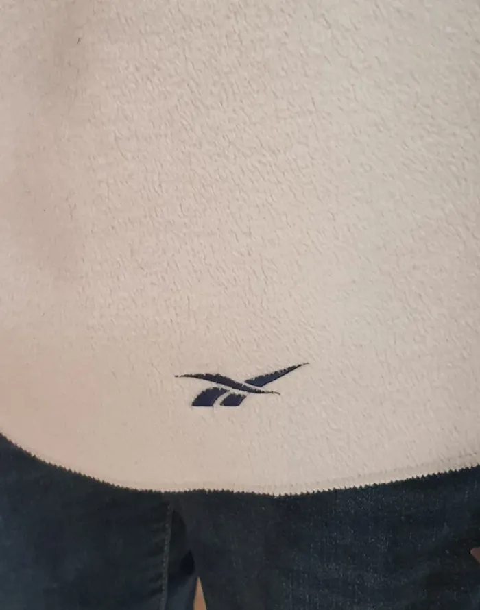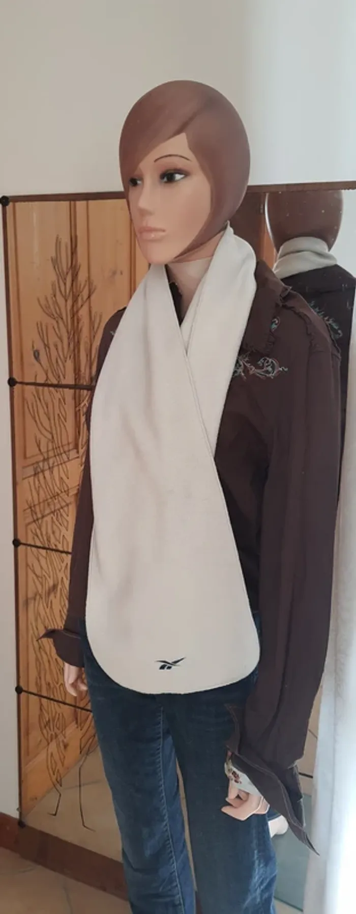 Echarpe #Reebok, crème Logo bleu brodé, 100% polyester Dimensions: longueur 150 cm., largeur 27 cm.