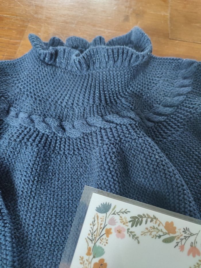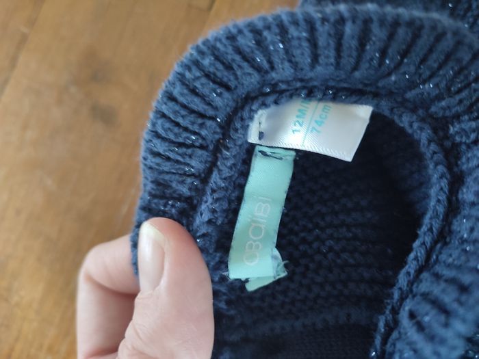 Robe pull bleu marine avec laine pailletée Obaibi 12 mois Motif brodé
