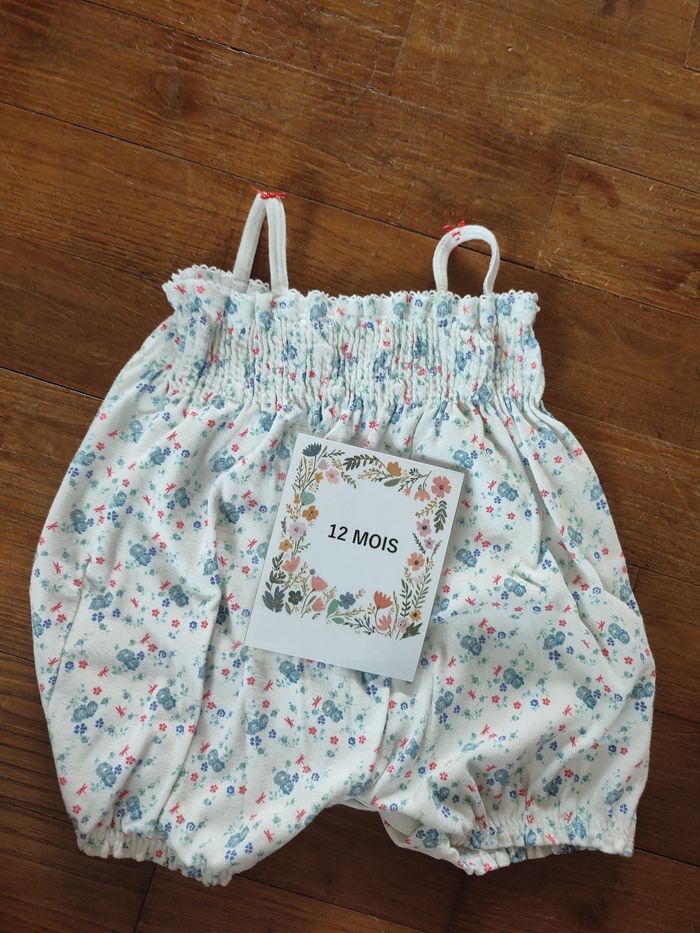Combinaison short débardeur Petit bateau 12 mois Fleury fermeture par pression à l'entrejambe