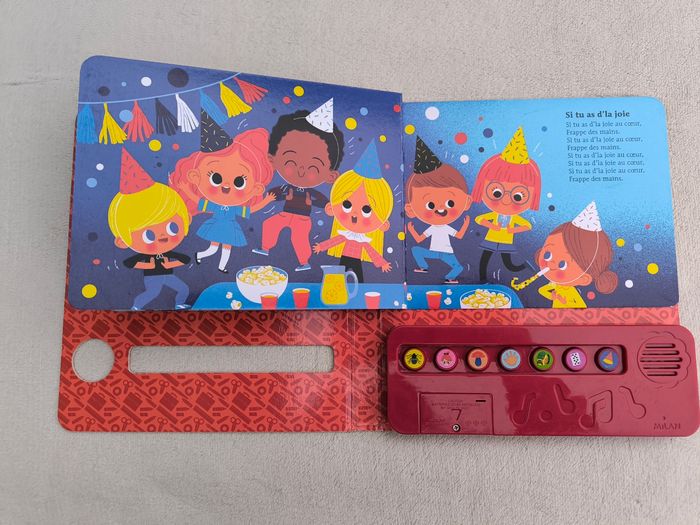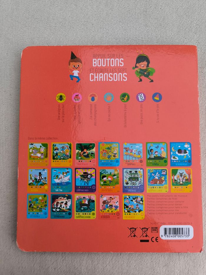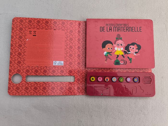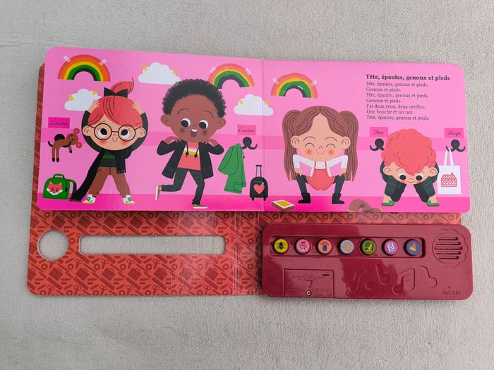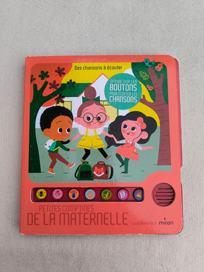 Livre sonore musical Des chansons à écouter : Petites comptines de la maternelle Éditions Milan • Pages cartonnées • 7 chansons : -> Une araignée sur le plancher -> Tête, épaules, genoux et pieds -> J'ai ramassé des champignons -> Qui se cache ? -> Un kilomètre à pied -> Une puce, un pou -> Si tu as d'la joie • Intérieur du livre en très bon état • Coins et arêtes abîmés ⚠️ D'autres livres dans la même collection Fonctionne Piles incluses En très bon état #evelyne_livres