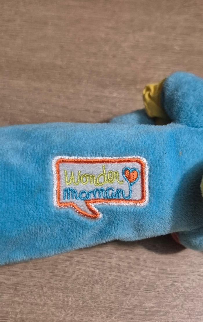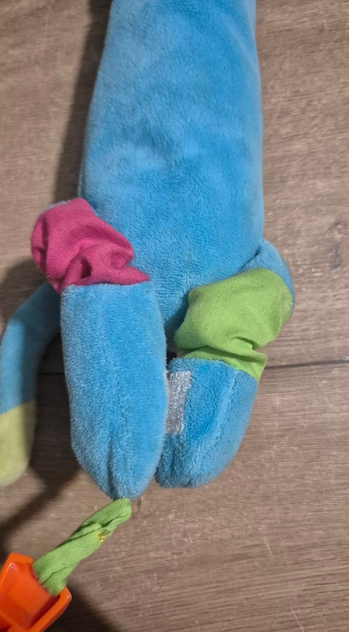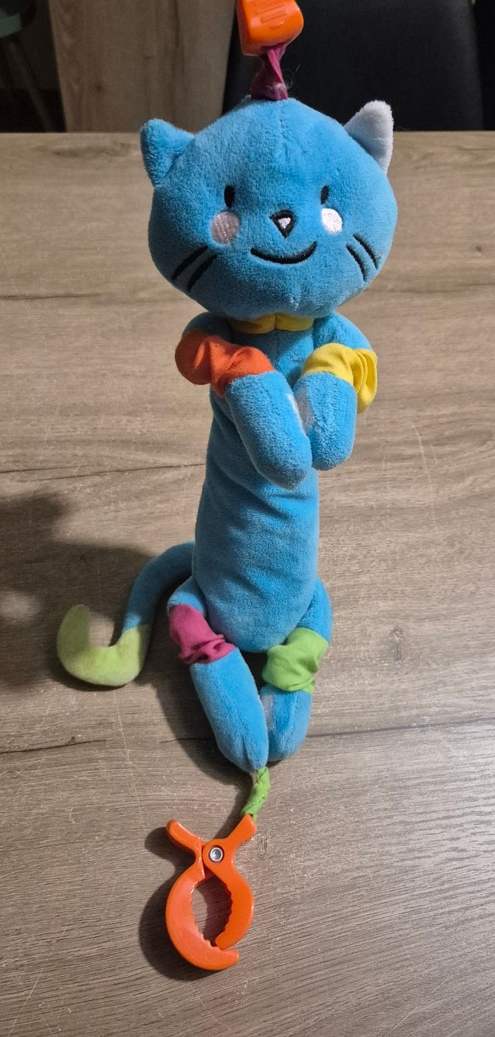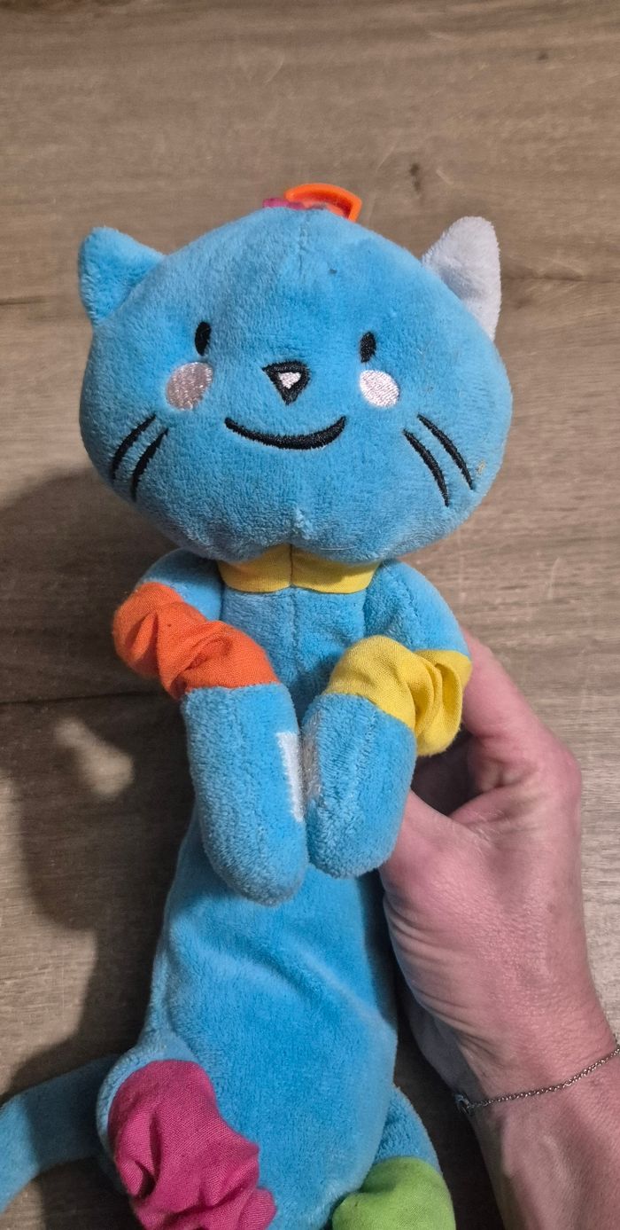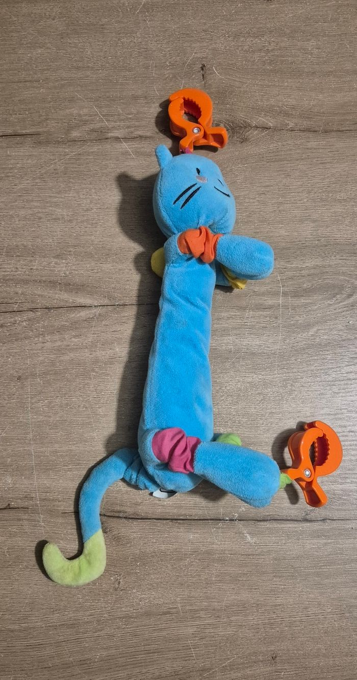 Jouet en tissus à suspendre Lucas le chat, idéal pour poussette ou à accrocher au parc Grelot, pattes qui s'étirent et se scratchent Wonder Maman Bon état
