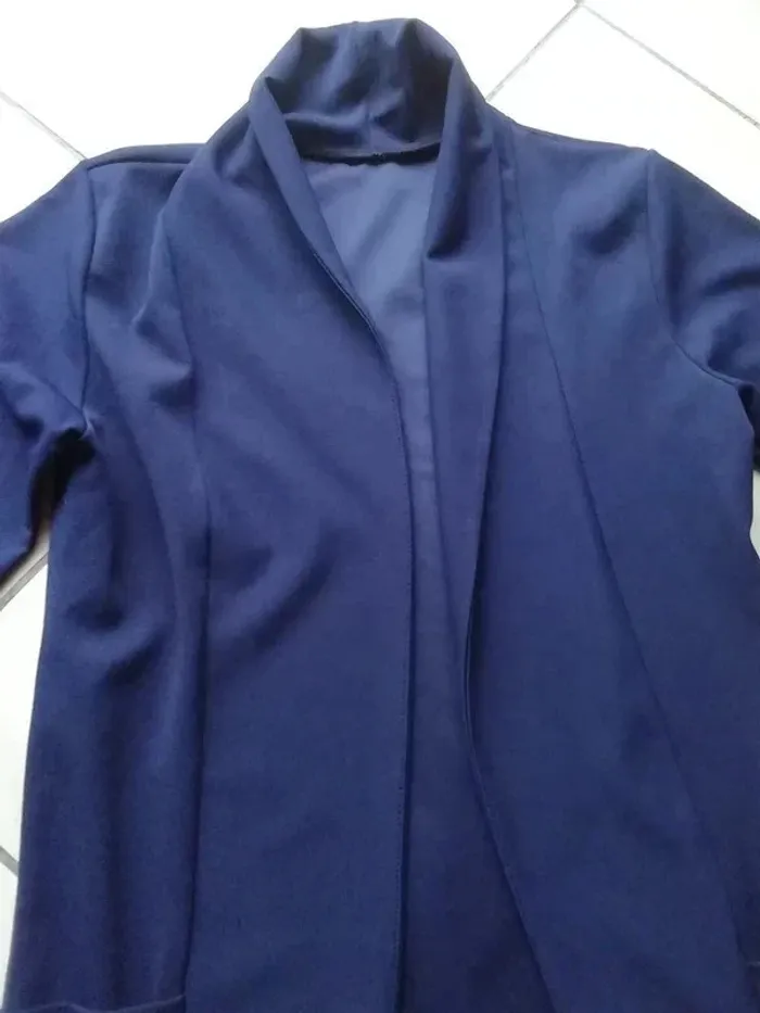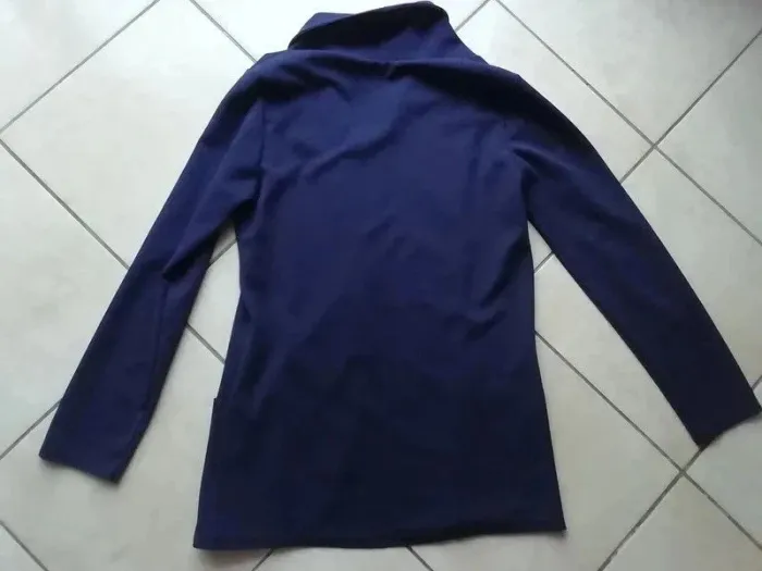 DE COULEUR BLEU MARINE. TRÈS BEAU TISSU FLUIDE.POCHES PLAQUEES SUR LES COTES. COUPE OUVERTE. PAS DE TAILLE NOTEE SUR VETEMENT MAIS M OU 38. NEUVE JAMAIS PORTEE.