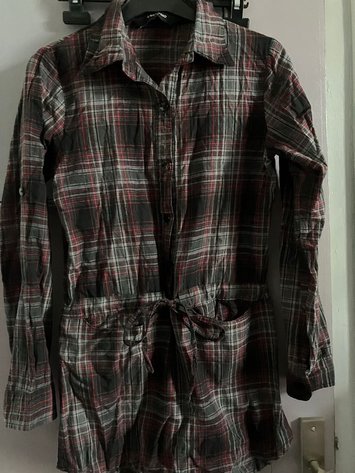 Jolie tunique à carreaux fonds gris effet rock En excellent état