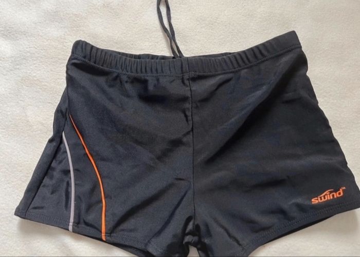 Vends ce maillot de bain type Shorty pour garçon marque Swind Couleur Noir et bandes orange et gris sur le côté étiquette de taille 12 14 ans mais taille plus petit, plutôt 10 ans demie largeur à la taille 27 cm longueur 23 cm 1,5 euros Mes autres annonces de vêtements ou accessoires pour garçon de 10 à 12 ans #lma42accessoire #lma42garcon12 #lma42garcon10 #lma42garcon11 #lma42sport