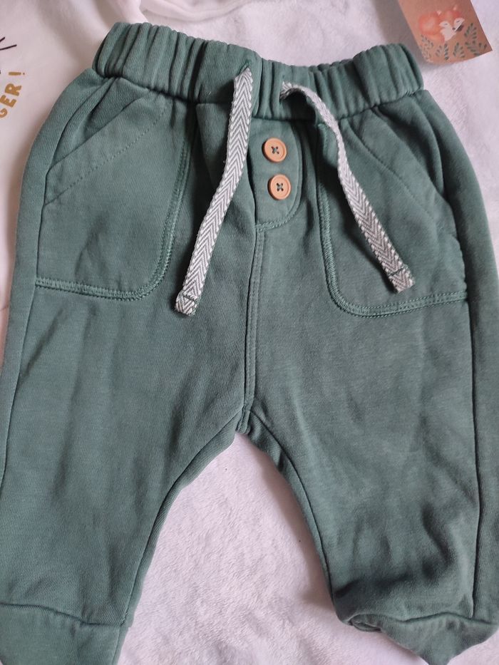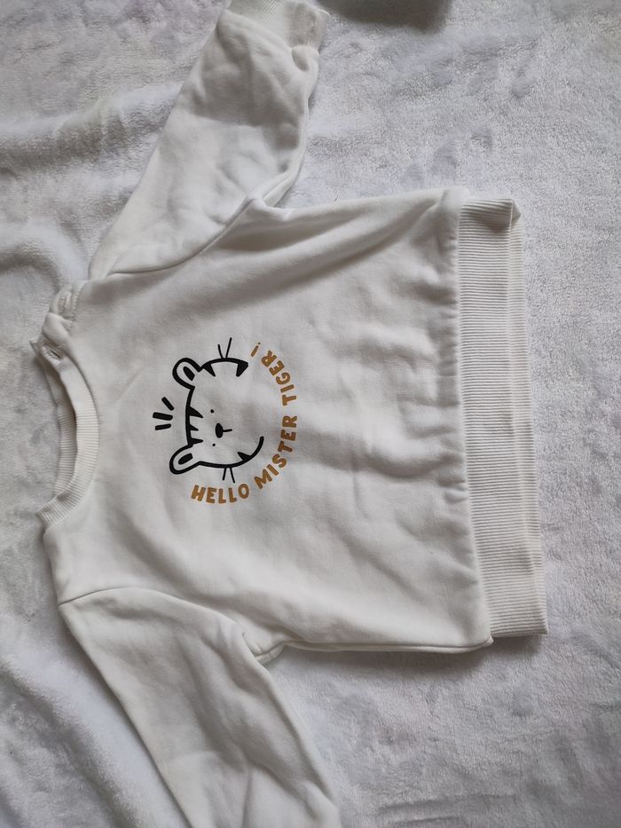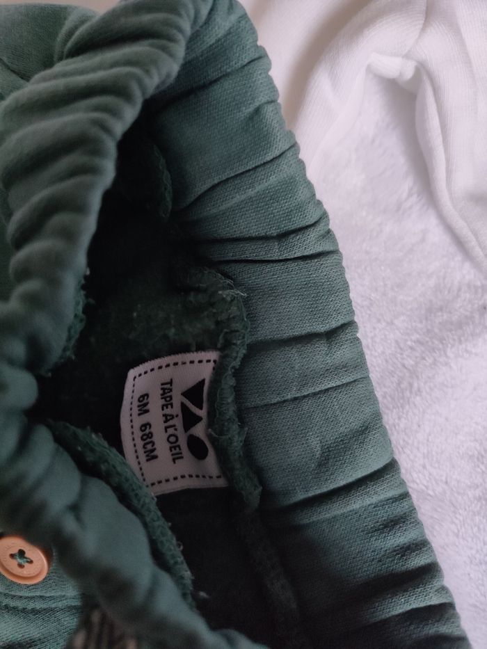 Ensemble pour petit garçon taille 6 mois en excellent état • Pull blanc de la marque Kiabi petit tigre "hello mister tiger" • Pantalon de la marque Tape a l'oeil vert d'eau effet jogging avec 2 petites poches à l'avant