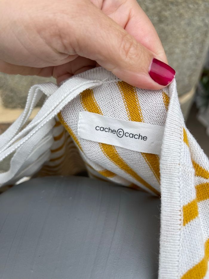 Pull en maille crème  fine rayure moutarde - Cache Cache  - photo numéro 5