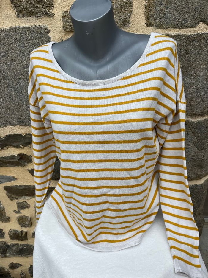 Pull en maille crème  fine rayure moutarde - Cache Cache  - photo numéro 2