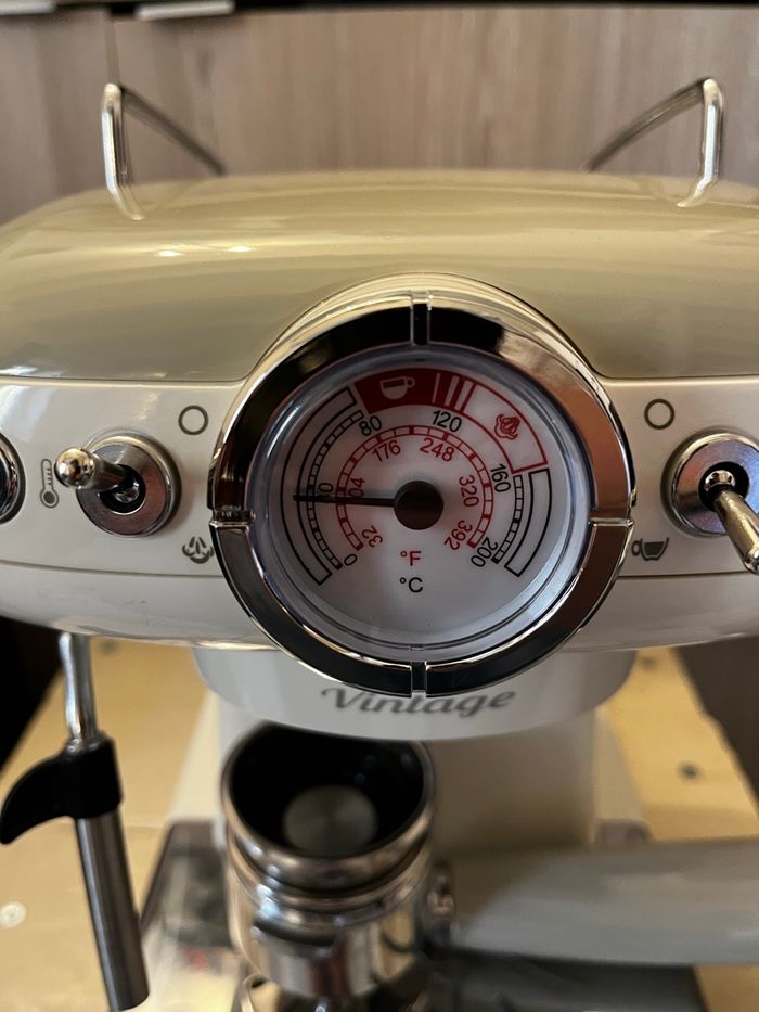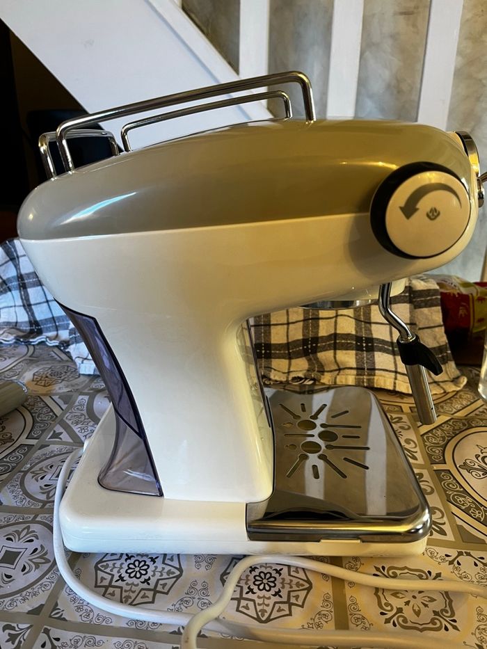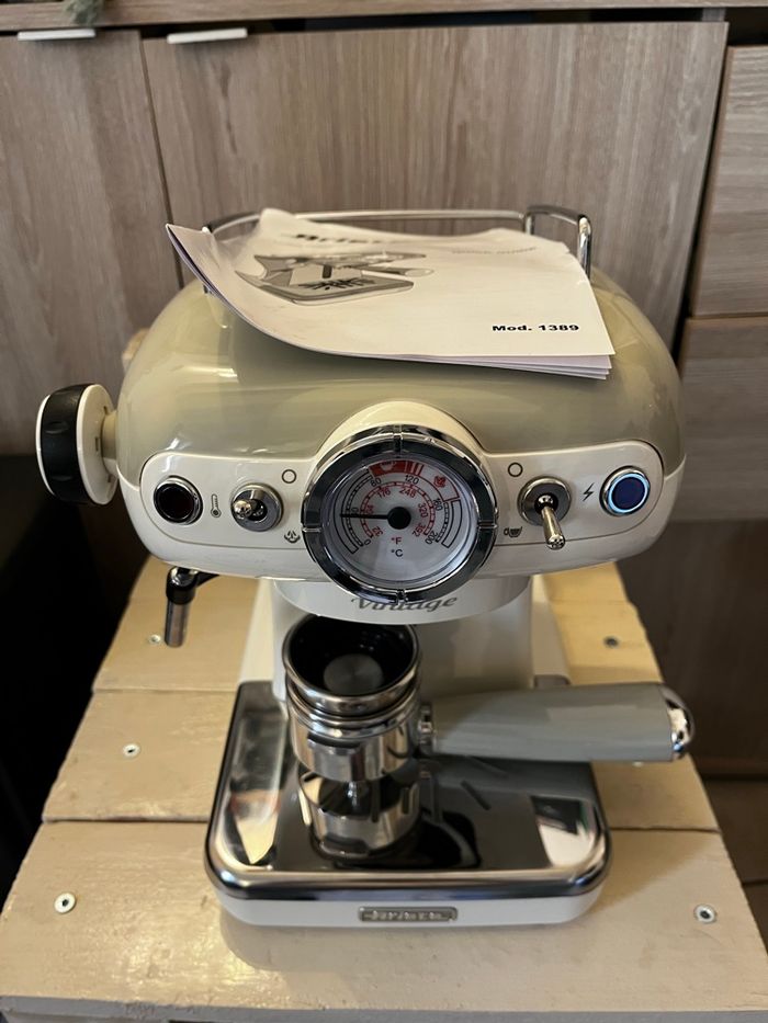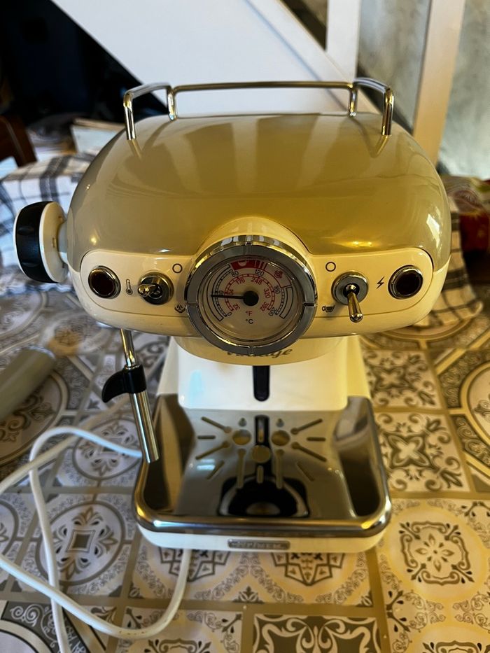 Salut je vend cette cafetière ariete vintage ! ☕️Café : moulu et en dosette ✨État : neuf ( utilisé 1 fois ) Capacité : eau chaude et lait chaud Marque : Ariete Notice intégré ! + dosette de café offerte Envoie rapide et protégée !! 💌📨