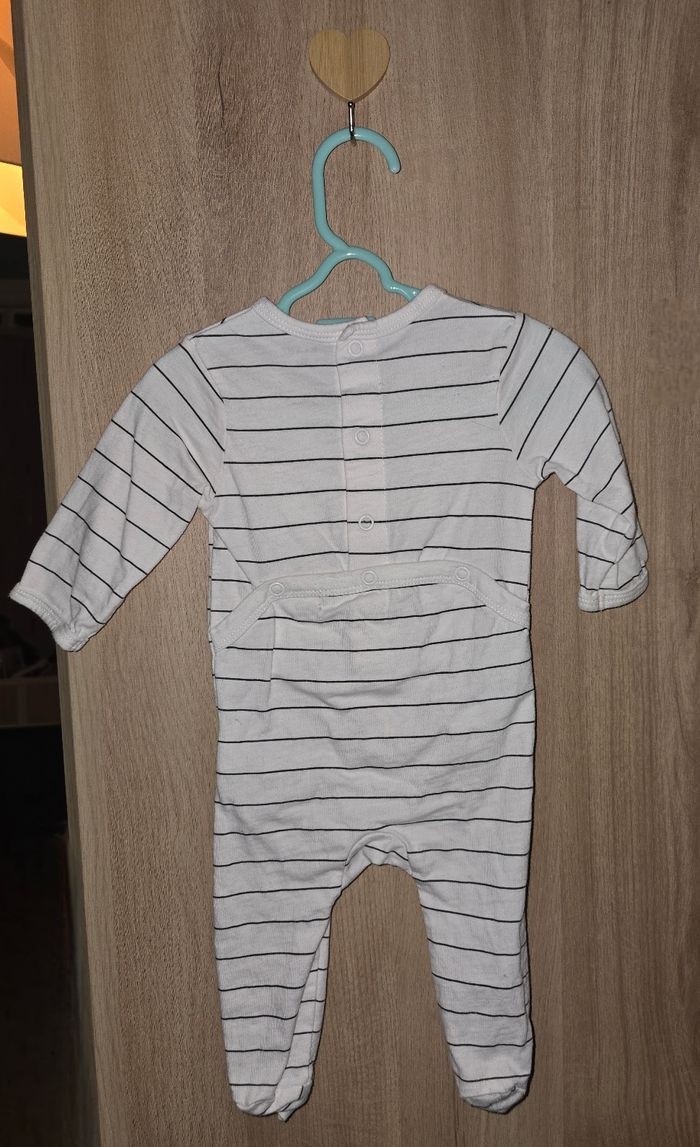 Pyjama rayé Taille : 3 mois, 56-62 cm, 6kg Fermeture à pressions "Le bonheur en famille" avec soleil en relief Très bon état