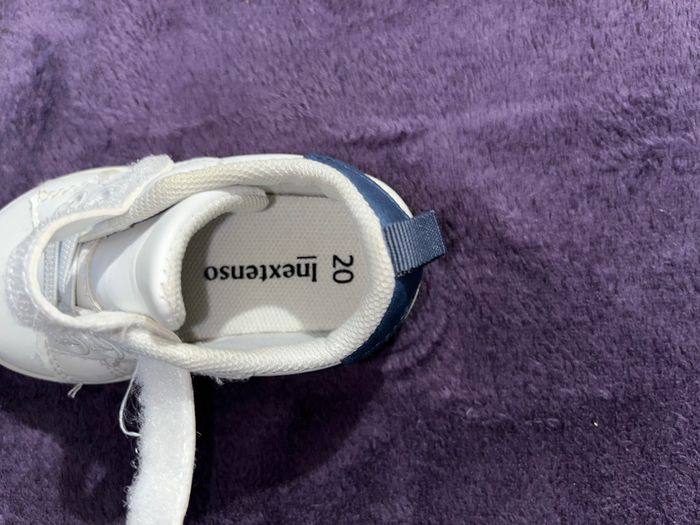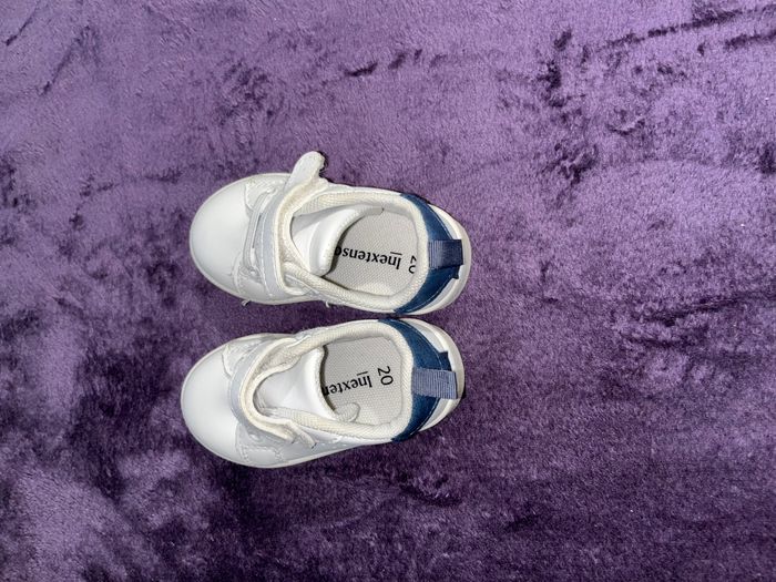 Marque : Inextenso Pointure : 20 État : Excellent, comme neuves Couleur : Blanc avec détails bleu marine Fermeture : Scratch + lacets décoratifs ✨ Description : Craquantes petites baskets pour bébé ! Très peu portées.