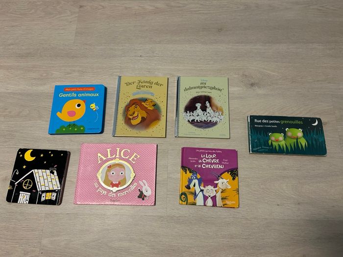 Je vends un lot de livres pour enfants, idéal pour compléter une bibliothèque jeunesse à moindre coût. Parfait pour la lecture du soir, la découverte des histoires classiques et l’éveil des plus petits ✨ 🧸 Contenu du lot : • Albums cartonnés pour jeunes enfants • Contes et histoires connues (Alice, fables, animaux, etc.) • 2 livres Disney en polonais (Le Roi Lion & Les 101 Dalmatiens) 📌 État des livres : • Certains livres sont en état satisfaisant à moyen, avec traces d’usage (coins un peu usés, petites marques normales pour des livres enfants) • 👉 Les 2 livres Disney en polonais sont en TRÈS BON ÉTAT, propres et bien conservés • Ensemble parfaitement lisible et utilisable 💡 Pourquoi ce lot vaut le coup ? ✔ Variété d’histoires et de formats ✔ Idéal pour enfants, crèche, assistante maternelle ou parents ✔ Les livres Disney seuls valent déjà le détour ✔ Prix très attractif pour l’ensemble : excellent rapport qualité/prix 💰 Très bon prix pour le lot complet – priorité à la vente ⚠️prix negoci