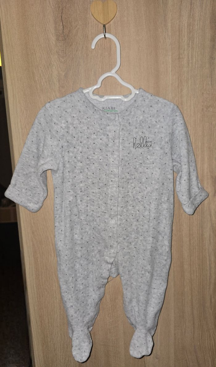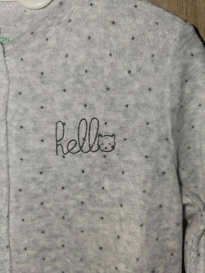 Pyjama gris à petites étoiles noires Taille : 3 mois, 56-62 cm, 6 kg Fermeture à pressions Très bon état