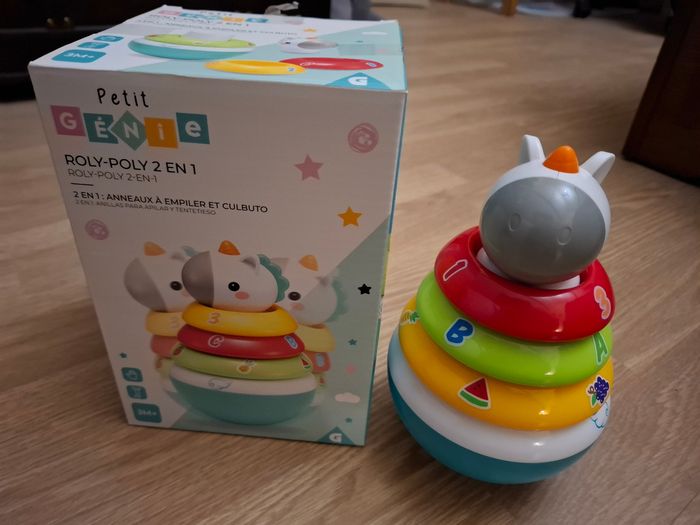 Licorne culbuto Bo jungle Jouet qui peut être utilisé à différents stades de développement ( couleurs, chiffres...) Dans son emballage d'origine Très bon état Dès 3 mois