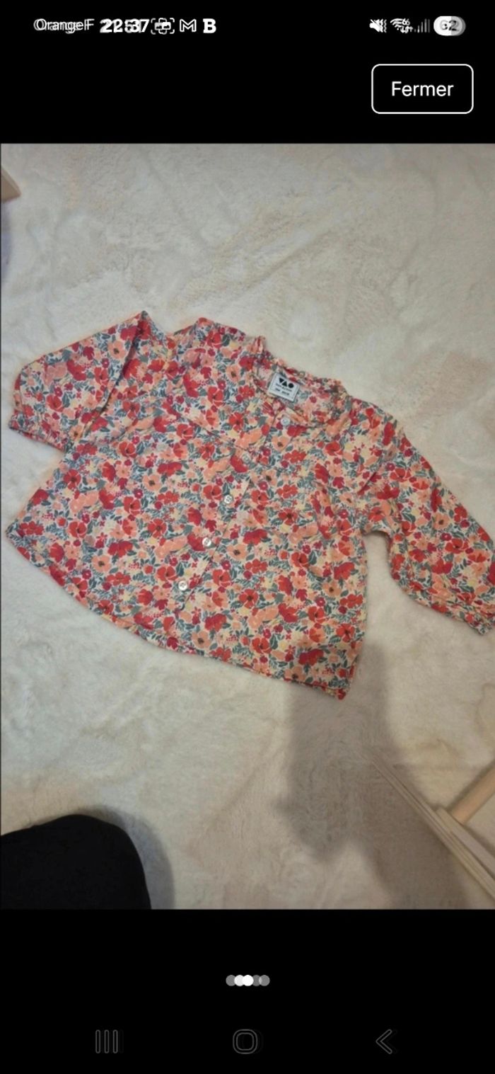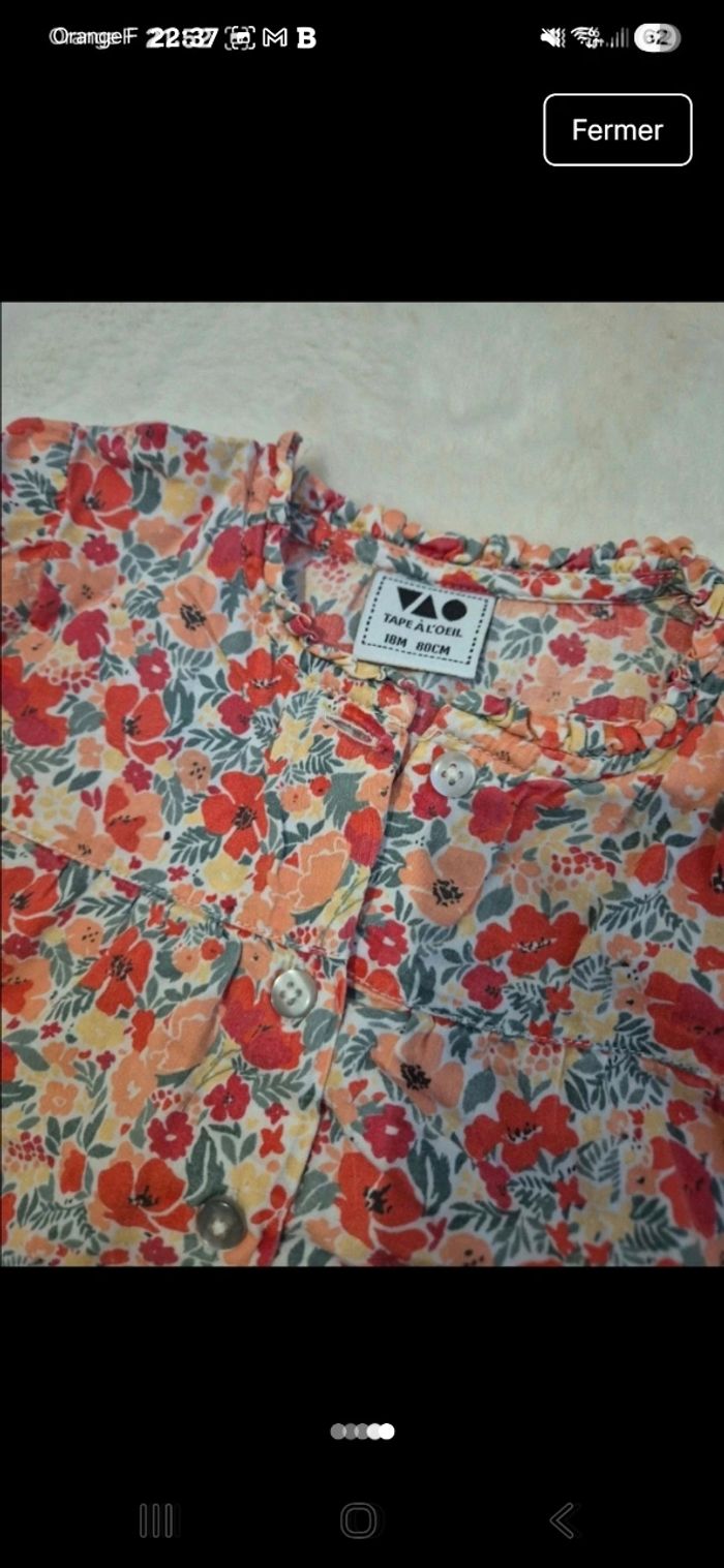 T-shirt / blouse manche longues Tape a l'œil TAO 18 mois Fleurs rouges oranges jaune ⚘️🌼🌻 Feuilles vertes 🍃 Maison non fumeur #18mois_lohann