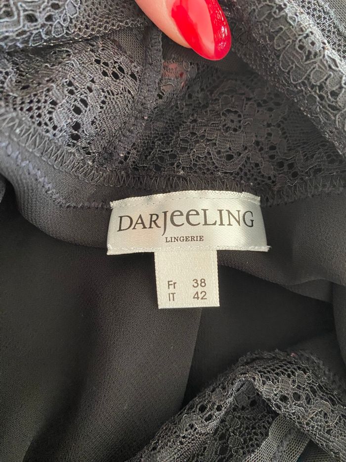 Nuisette noire de la marque Darjeeling taille 38 Dos nu et légère fente à l'avant Jamais portée
