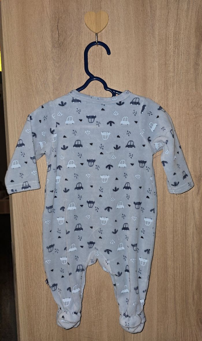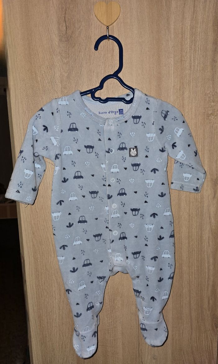 Pyjama bleu motifs voitures Taille : 3 mois, 60 cm Fermeture à pressions sur l'avant Élastiqué aux chevilles pour un bon maintien Très bon état