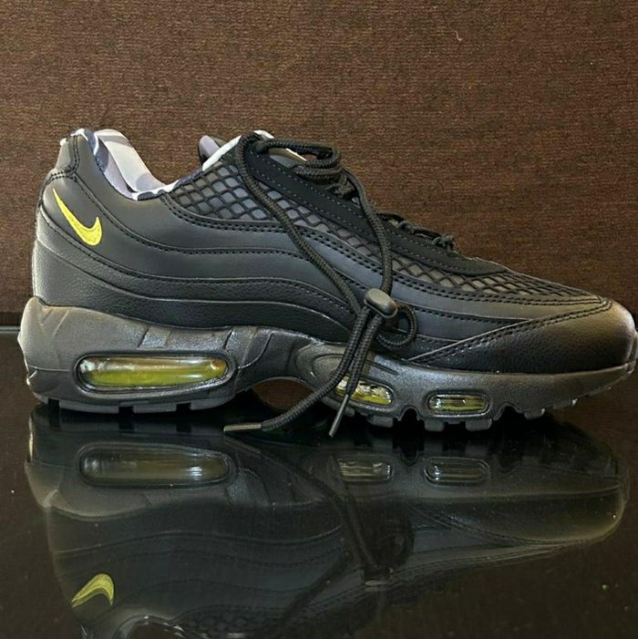 Baskets Nike Air Max 95 x Corteiz « Honey Black » noires avec détails jaunes, pointure 43. Très recherchées sur la scène streetwear. Design iconique avec amorti Air visible, confort exceptionnel et style urbain. Idéales pour les collectionneurs et les passionnés de streetwear.