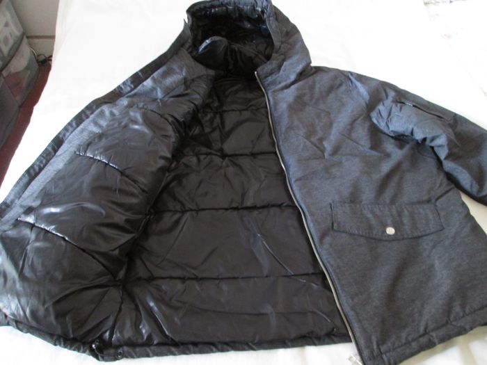 Vends blouson molletonné gris homme à capuche. 2 poches sur le devant + 1 à l'intérieur + 1 sur une manche. Possibilité de régler la largeur du poignet. Taille XL. Comme neuf, très peu porté. N'hésitez pas à consulter mes autres annonces.