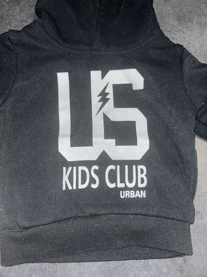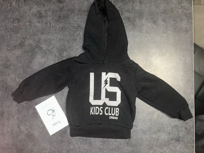 Sweet à capuche bébé Couleur noir Inscription US kids club urban Sans poche Taille : 9 mois