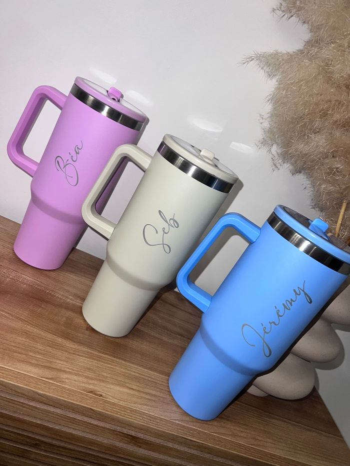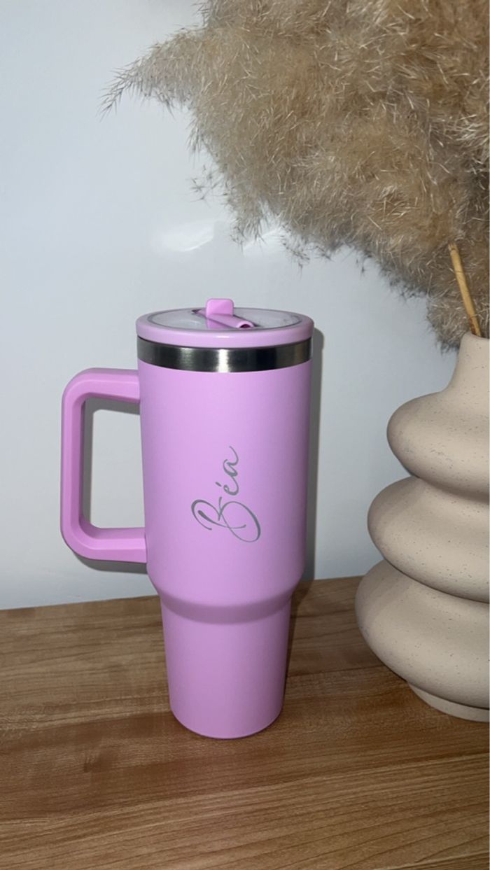 Grande gourde avec paille intégrée et poignée personnalisée Contenant : 1L2 Plusieurs coloris disponibles Le prénom de votre choix sera gravé au laser Tiens le chaud et le froid