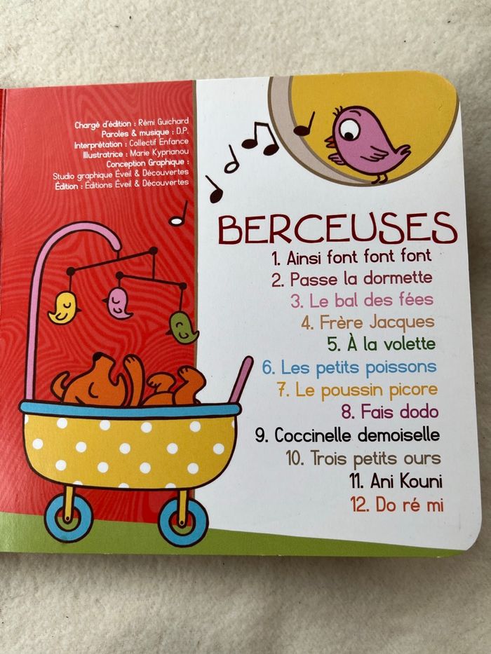 Vends ces deux livres - Petit livre de berceuses avec CD, bébé musique, Avec pages cartonnées - Comptine, édition lire c’est partir, illustration Déborah Mocellin 1 euro 9789941244544 Mes autres annonces de livres pour enfants #lma42livreenfant #lma42garcon1 #lma42garcon2 #lma42garcon3 #lma42fille1 #lma42fille2 #lma42fille3
