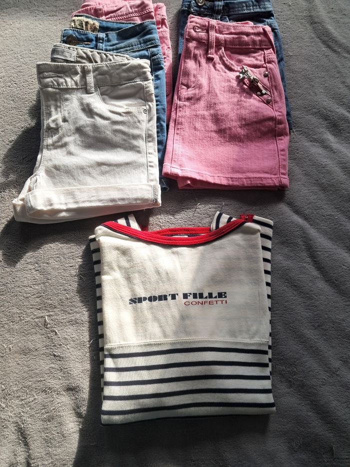 Vend lot été fille taille 6,8 ans Il y a 2 jupes taille 6ans 3 shorts taille 8 ans 1 tee shirt long ou robe légère taille marque confetti