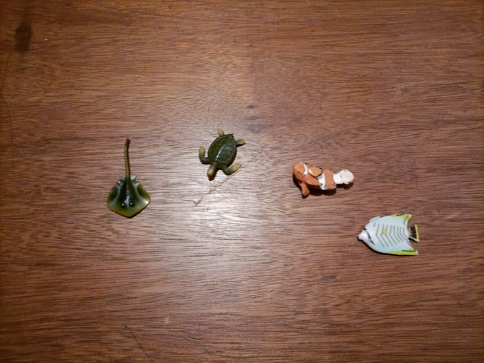 Animaux de la mer et insectes divers: papillon, coccinelle, girafe, mante religieuse etc.