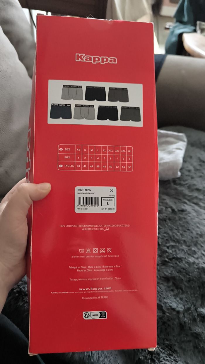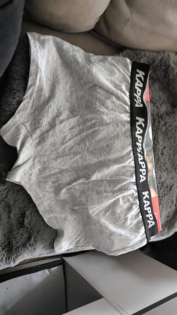 Caleçon de la marque kappa taille L jamais porté le gris a été essayé puis lavé car trop petit, les autres n'ont pas été sorti de la boîte. Coton.