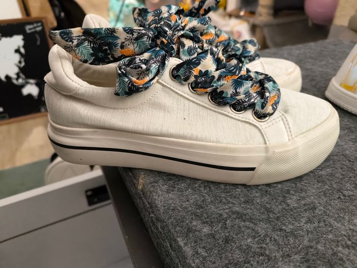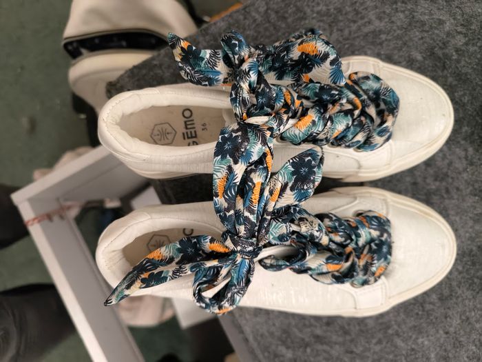 Baskets élégantes en taille 36, blanche avec des lacets originaux. Portée une fois.