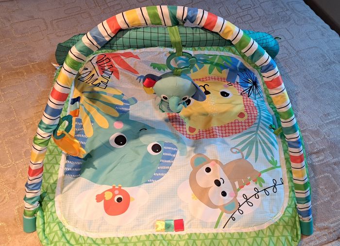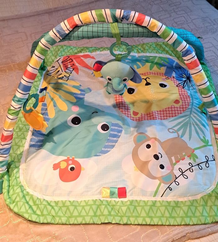 Tapis d'éveil de la naissance à 6 mois sur le thème de la savane. Facile d'entretien
