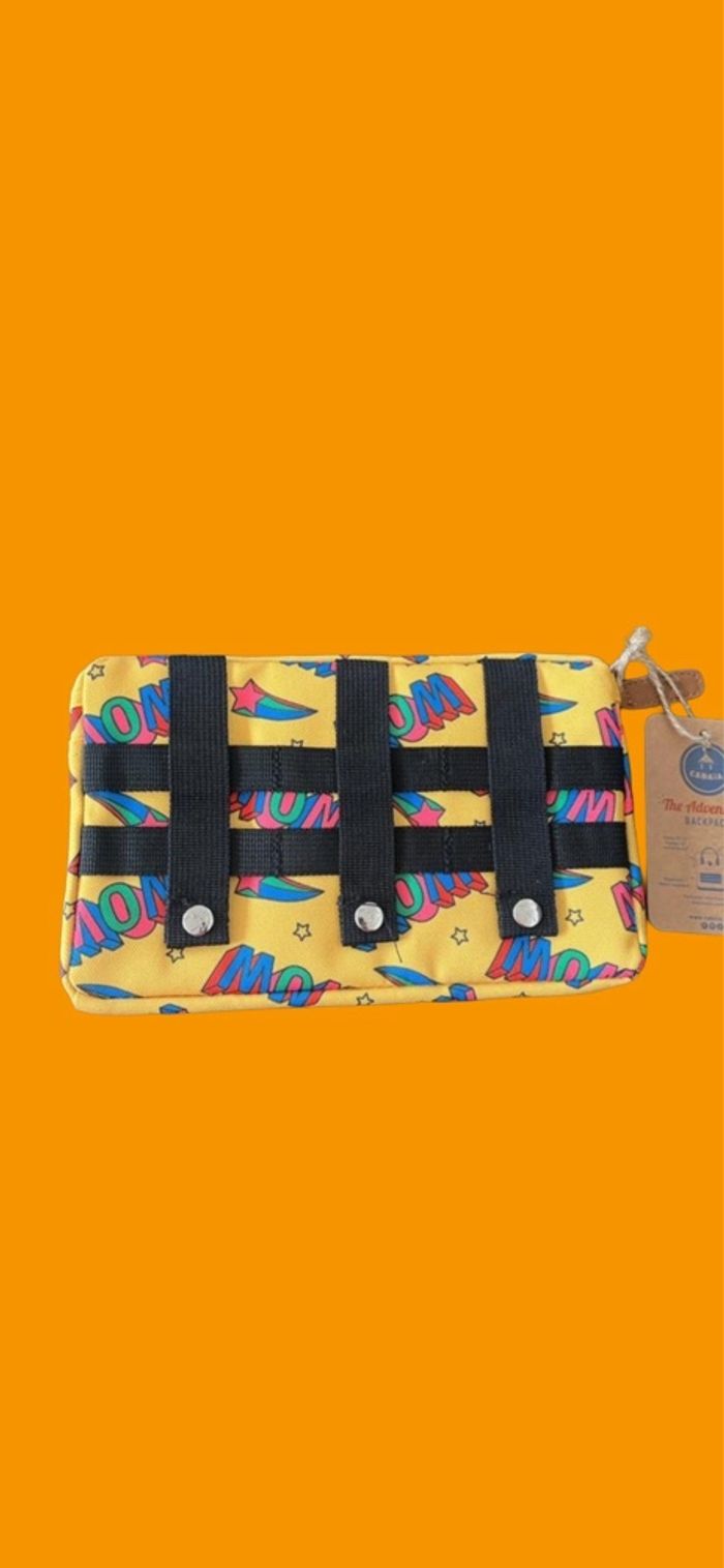 Pochette Cabaia édition limitée wow Une petite série de cette pochette a été cousu à l’envers, les motifs forment MOM au lieu de WOW, parfait pour les supers mamans ! Neuve avec étiquette, jamais utilisée