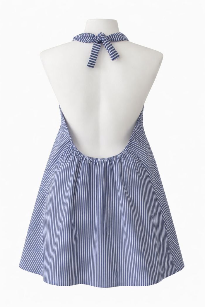 Magnifique robe dos nue Rayé bleu Marine et blanc
