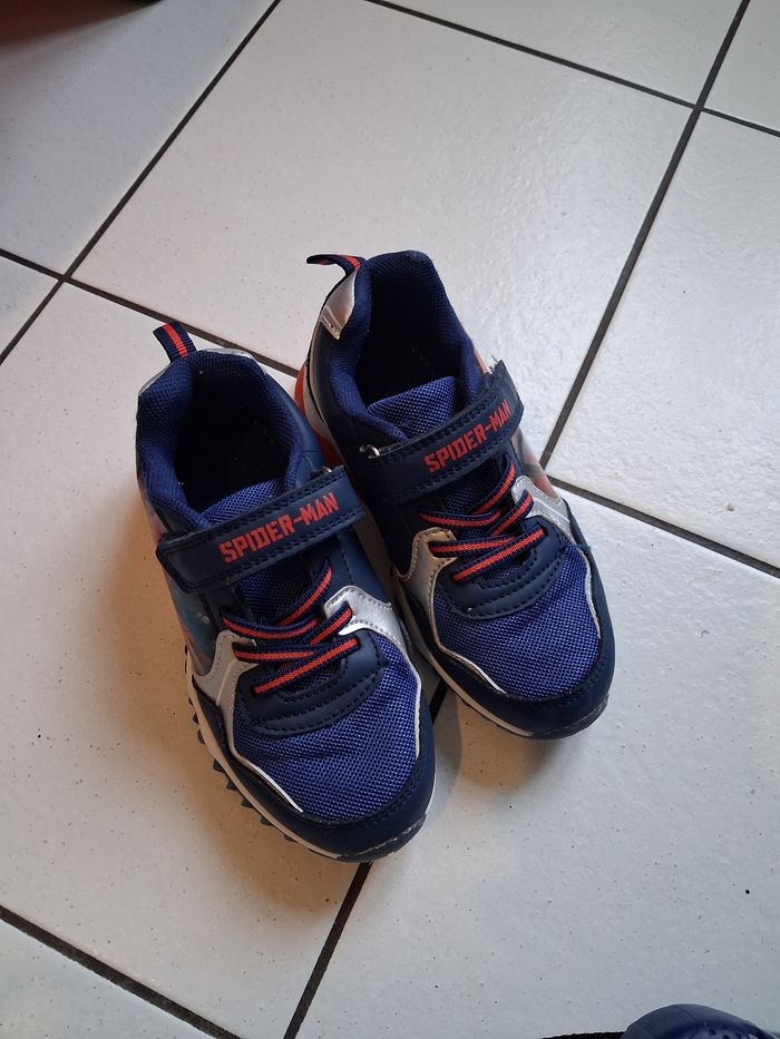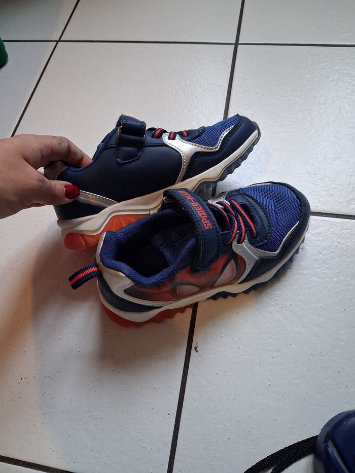 Très belles baskets lumineuses Spider Man en très bon état, bleues et rouges ⚠️ Elles correspondent à une taille 30 mais je vous recommande fortement de vérifier les mesures visibles sur les photos avant tout achat car les marques ne taillent pas toutes de la même manière 😉 N'hésitez pas à me contacter si vous avez des questions supplémentaires 😀