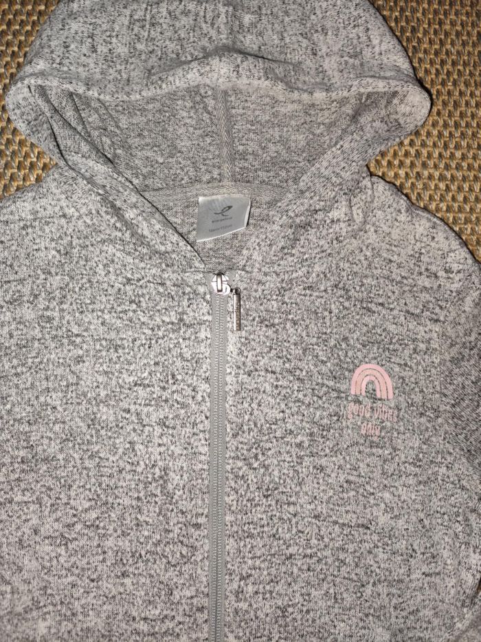 Gilet à capuche fille Energetics , 12 ans , coloris gris chiné , longueur totale 54 cm , aisselle à aisselle 40 cm , très bon état . N'hésitez pas à me demander d'autres photos ou infos complémentaires et à consulter mes autres ventes .