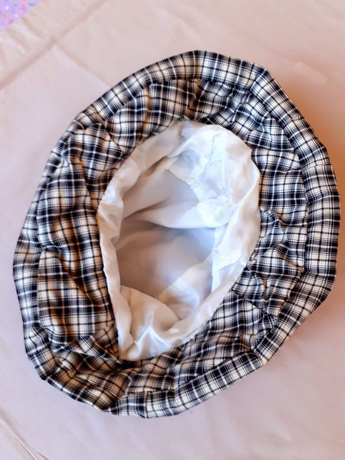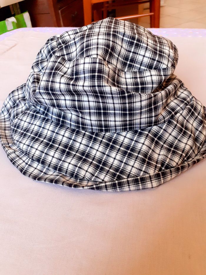 Vends un chapeau en tissu à carreaux, tour de tête 55 cm.