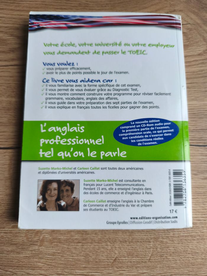 Livre et CD pour réussir l'épreuve TOIEC Prix de base: 17 euros Pages: 156 Vendu avec le CD Etat: Très bon état