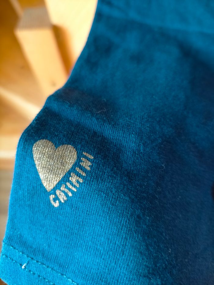 TBE Legging longueur sous le genou en jersey de coton marine. Cœur et signature catimini dorés au bas d'une jambe